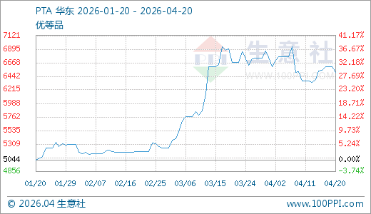 04月20日PTA价格6508.14元/吨 60天上涨25.60%